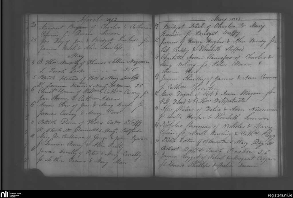 Swords; County of Dublin; Archdiocese of Dublin. Baptisms, Apr. 1823 to May 1823