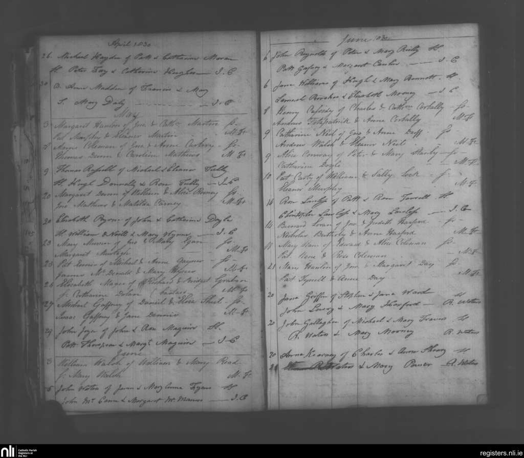 Swords; County of Dublin; Archdiocese of Dublin. Baptisms, Apr. 1830 to June 1830