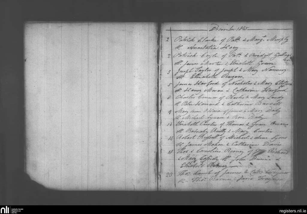 Swords; County of Dublin; Archdiocese of Dublin. Baptisms, Dec. 1845
