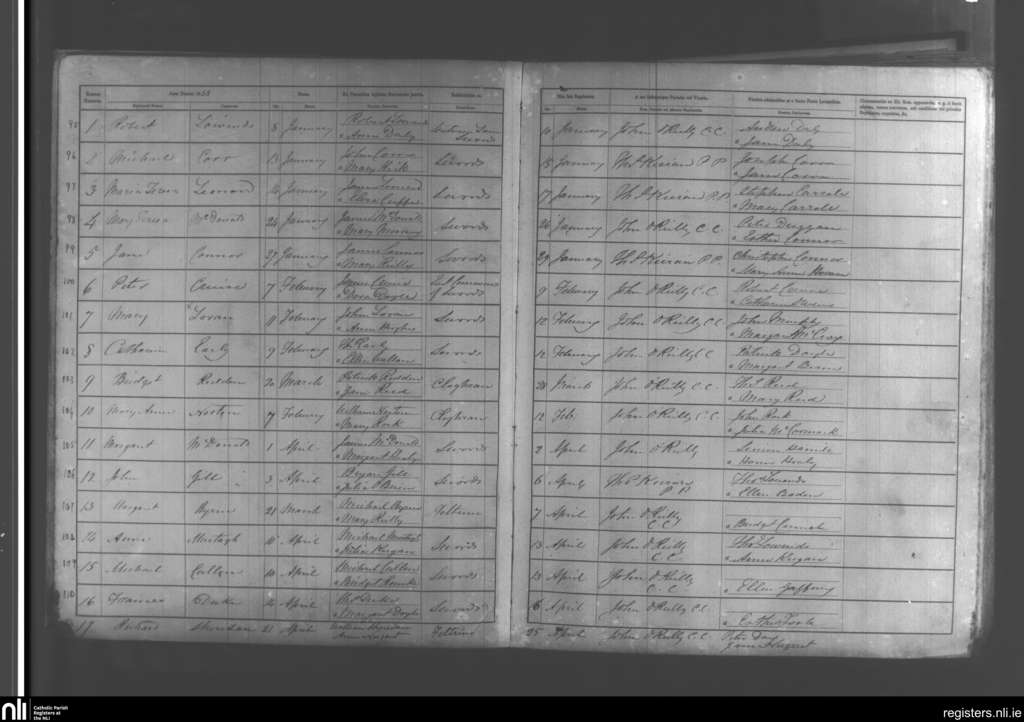 Swords; County of Dublin; Archdiocese of Dublin. Baptisms, Jan. 1858 to Apr. 1858