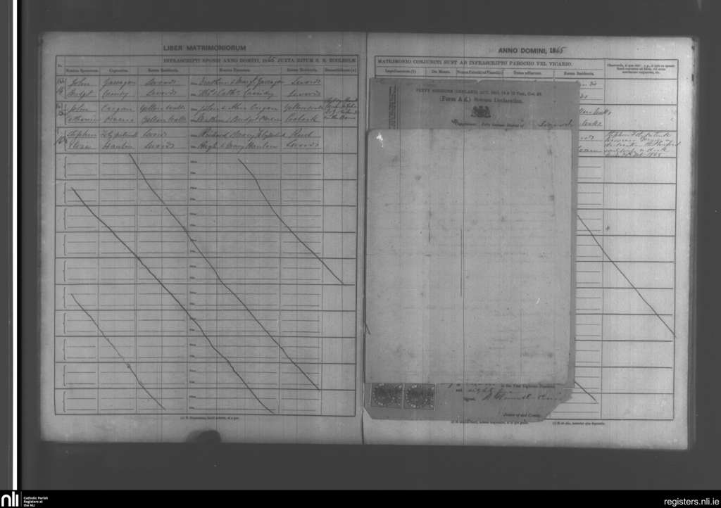 Swords; County of Dublin; Archdiocese of Dublin. Marriages, Oct. 1865 to Nov. 1865