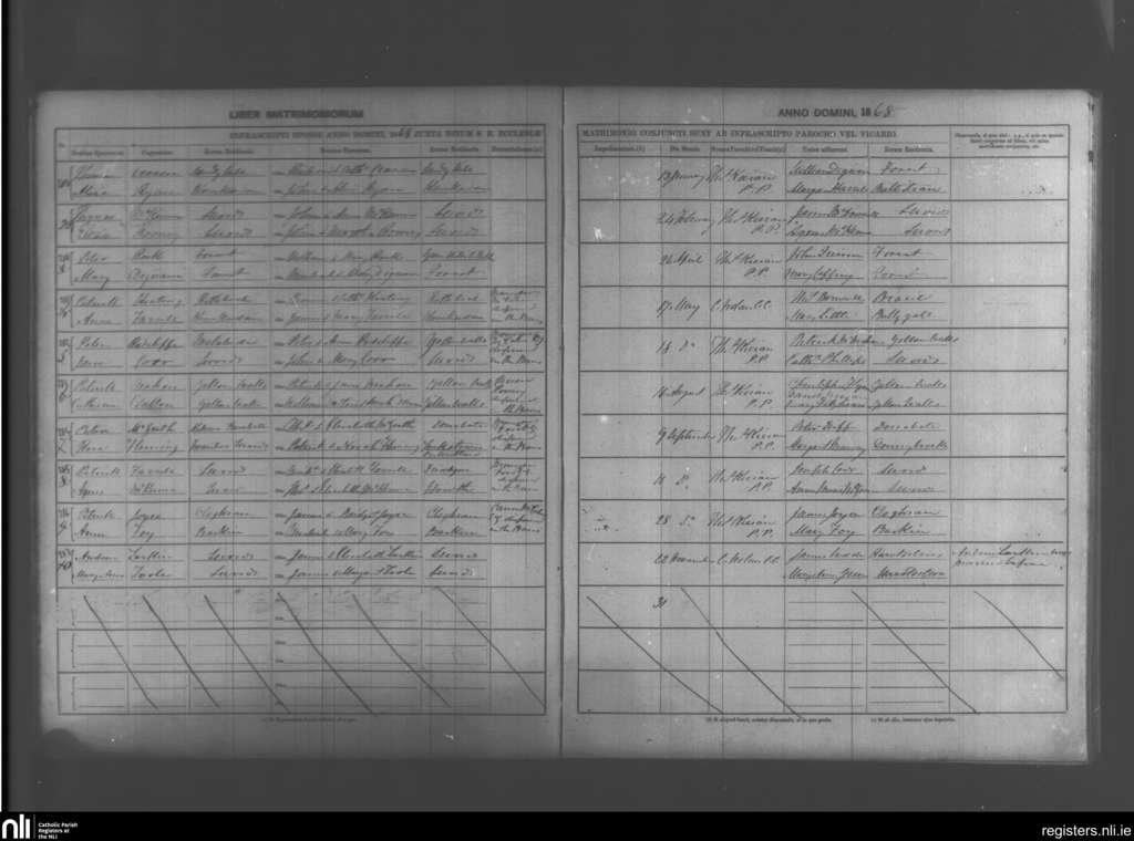 Swords; County of Dublin; Archdiocese of Dublin. Marriages, Jan. 1868 to Nov. 1868