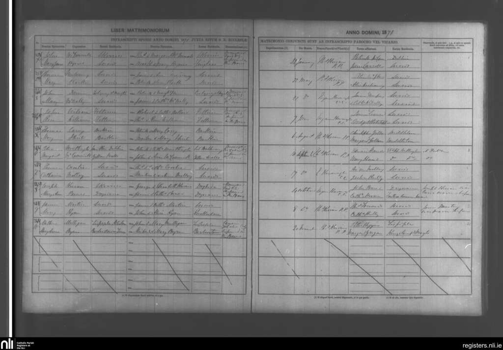 Swords; County of Dublin; Archdiocese of Dublin. Marriages, Jan. 1871 to Nov. 1871
