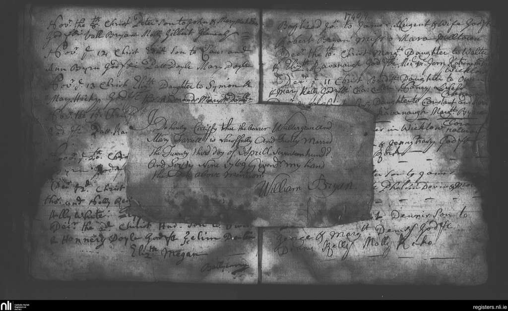 Wicklow; County of Wicklow; Archdiocese of Dublin. Marriages, Feb. 1748 to July 1749