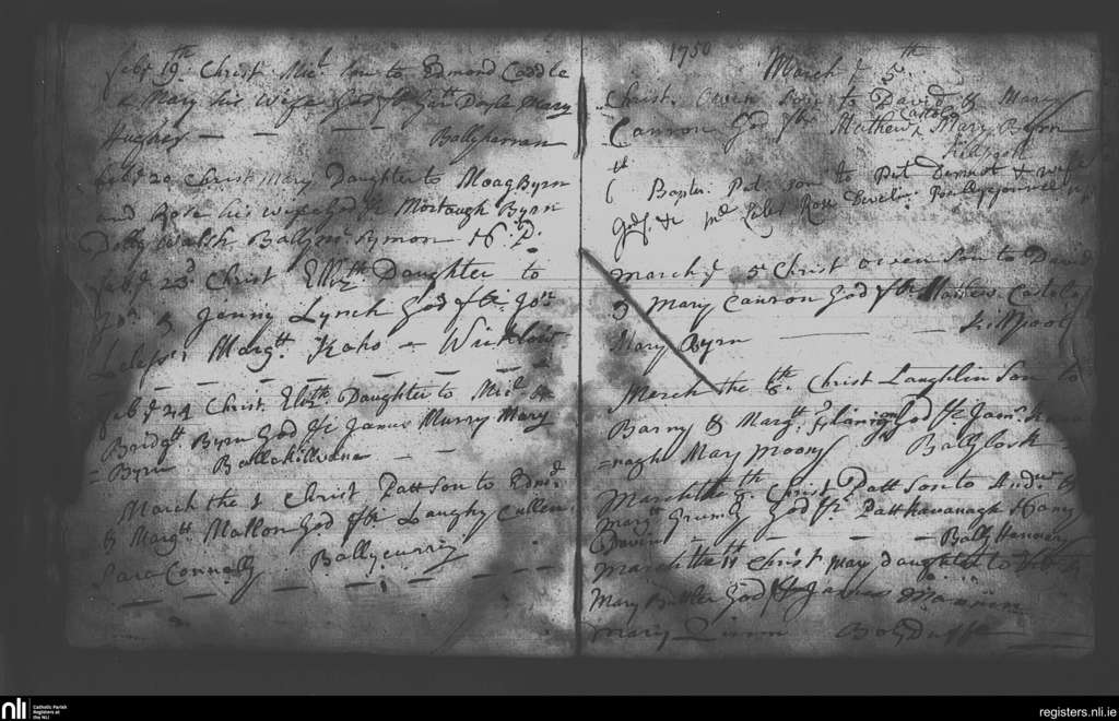 Wicklow; County of Wicklow; Archdiocese of Dublin. Baptisms, Oct. 1784