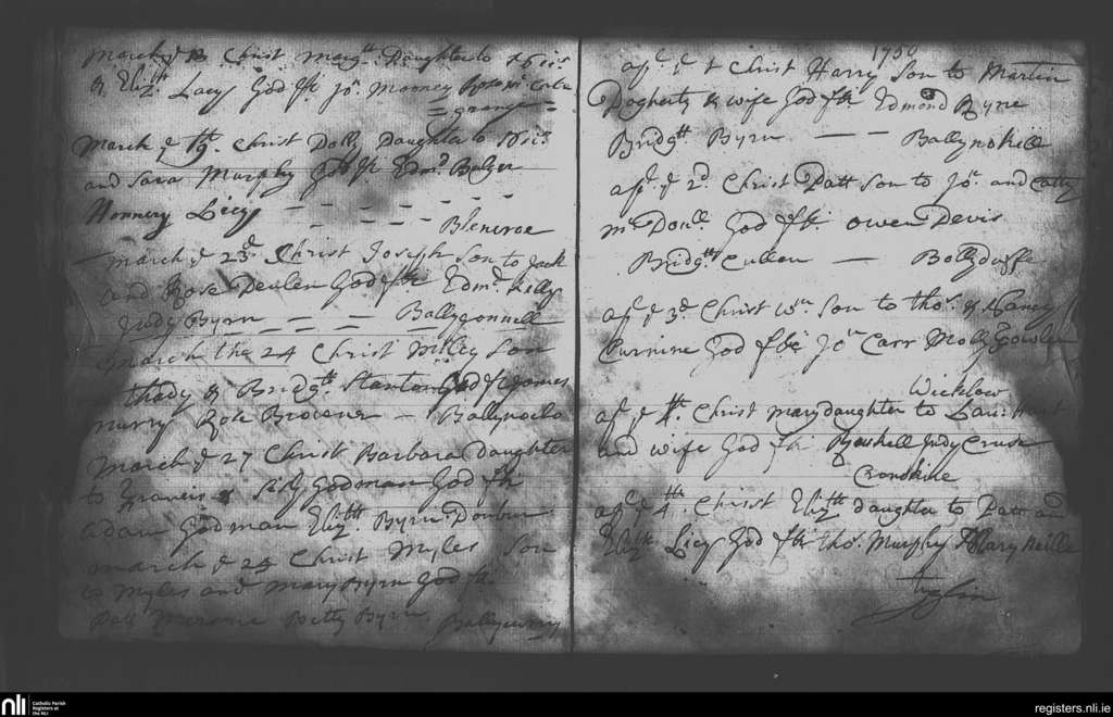 Wicklow; County of Wicklow; Archdiocese of Dublin. Baptisms, Aug. 1780 to June 1781