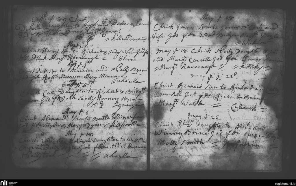 Wicklow; County of Wicklow; Archdiocese of Dublin. Baptisms, Mar. 1754 to May 1754