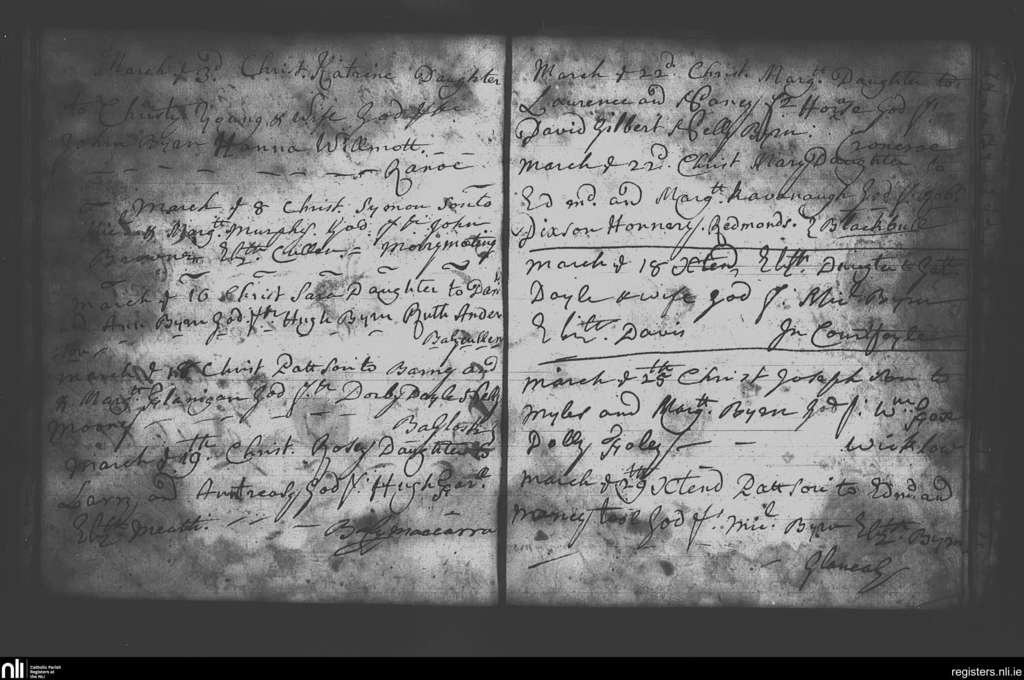 Wicklow; County of Wicklow; Archdiocese of Dublin. Baptisms, July 1754 to Aug. 1754