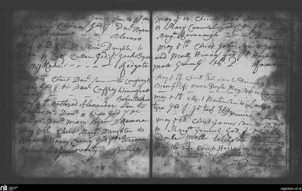 Wicklow; County of Wicklow; Archdiocese of Dublin. Baptisms, Apr. 1754