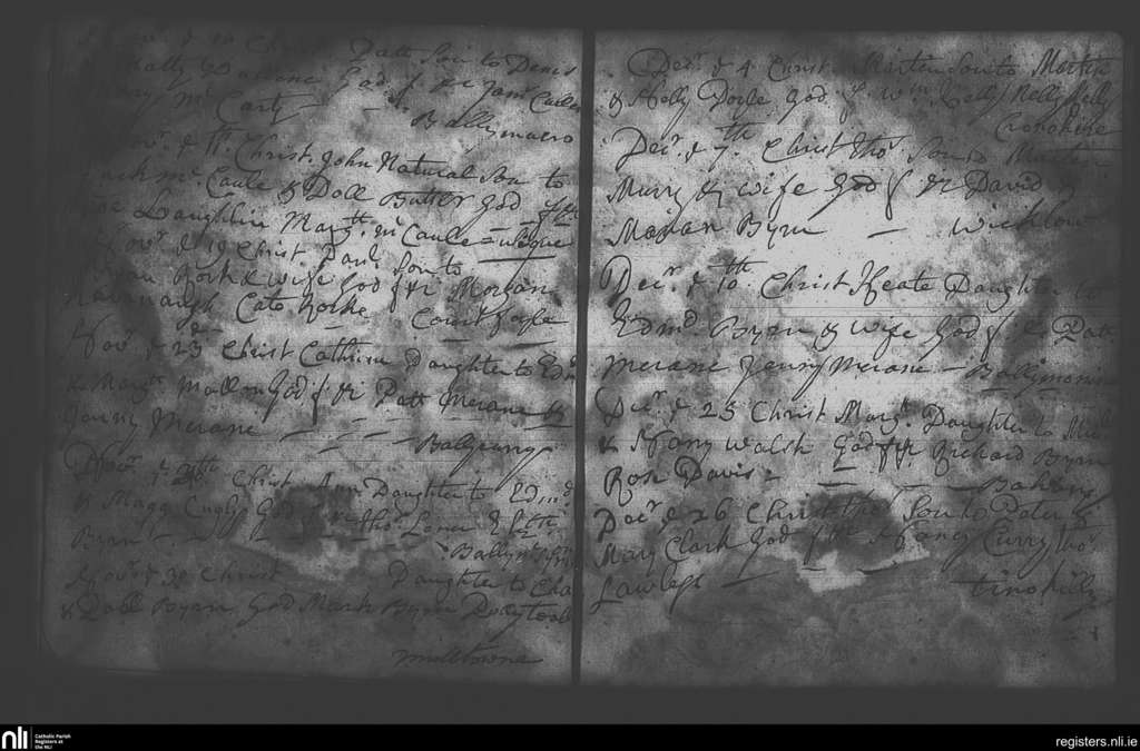 Wicklow; County of Wicklow; Archdiocese of Dublin. Baptisms, Jan. 1752