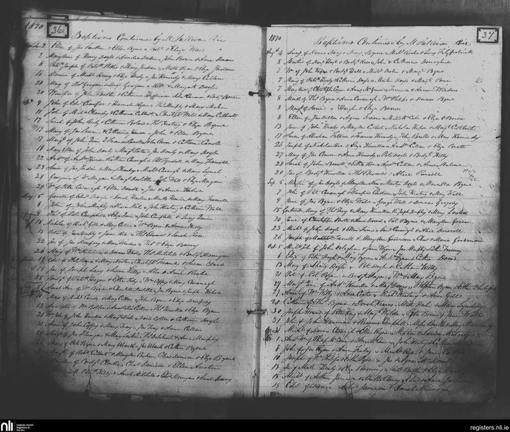 Wicklow; County of Wicklow; Archdiocese of Dublin. Baptisms, Sep. 1862 to Apr. 1863