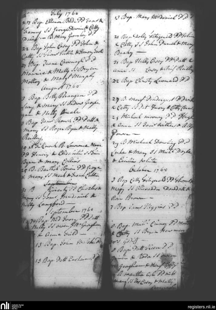 Booterstown; County of Dublin; Archdiocese of Dublin. Baptisms, July 1760 to Oct. 1760