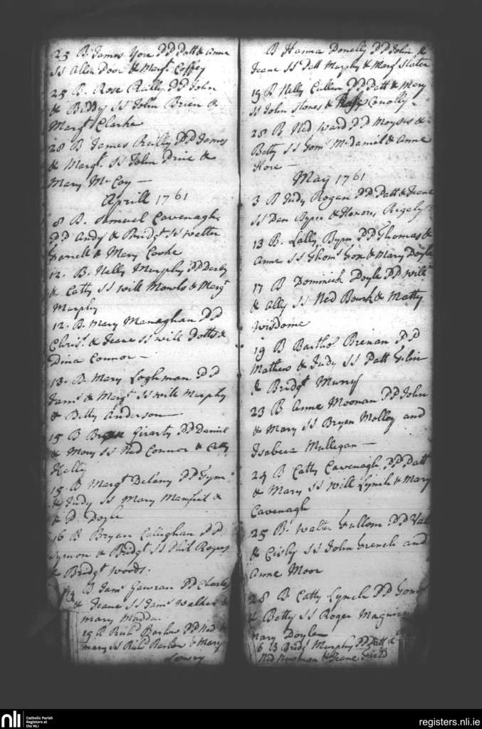 Booterstown; County of Dublin; Archdiocese of Dublin. Baptisms, Mar. 1761 to May 1761
