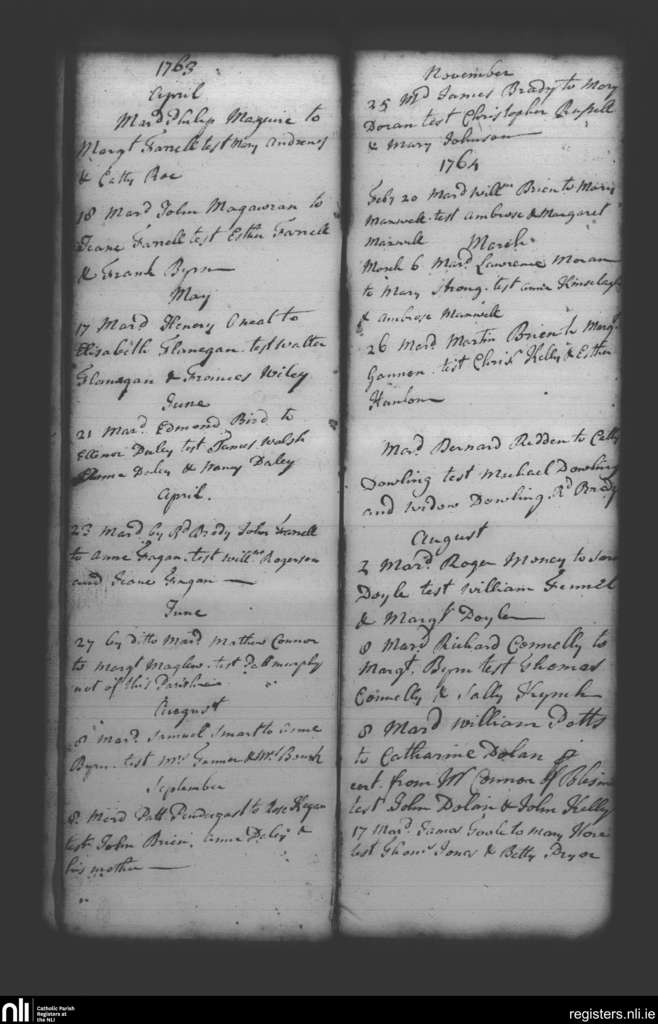 Booterstown; County of Dublin; Archdiocese of Dublin. Marriages, Apr. 1763 to Aug. 1764