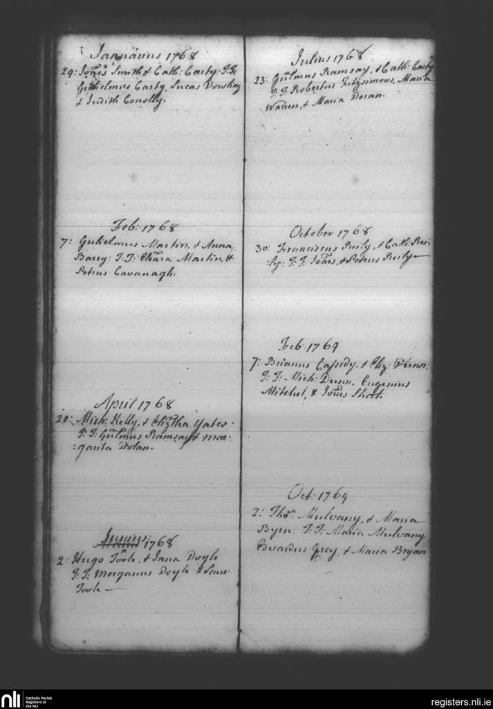 Booterstown; County of Dublin; Archdiocese of Dublin. Marriages, Jan. 1768 to Oct. 1769