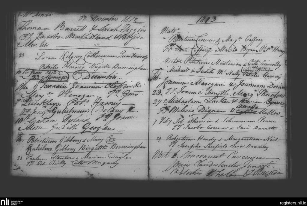 Booterstown; County of Dublin; Archdiocese of Dublin. Marriages, Nov. 1812 to Mar. 1813