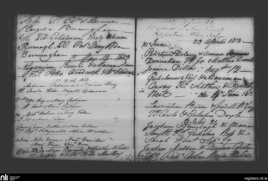Booterstown; County of Dublin; Archdiocese of Dublin. Marriages, Mar. 1813 to Sep. 1813