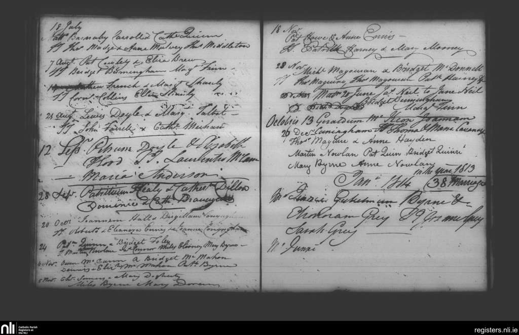 Booterstown; County of Dublin; Archdiocese of Dublin. Marriages, July 1813 to Jan. 1814