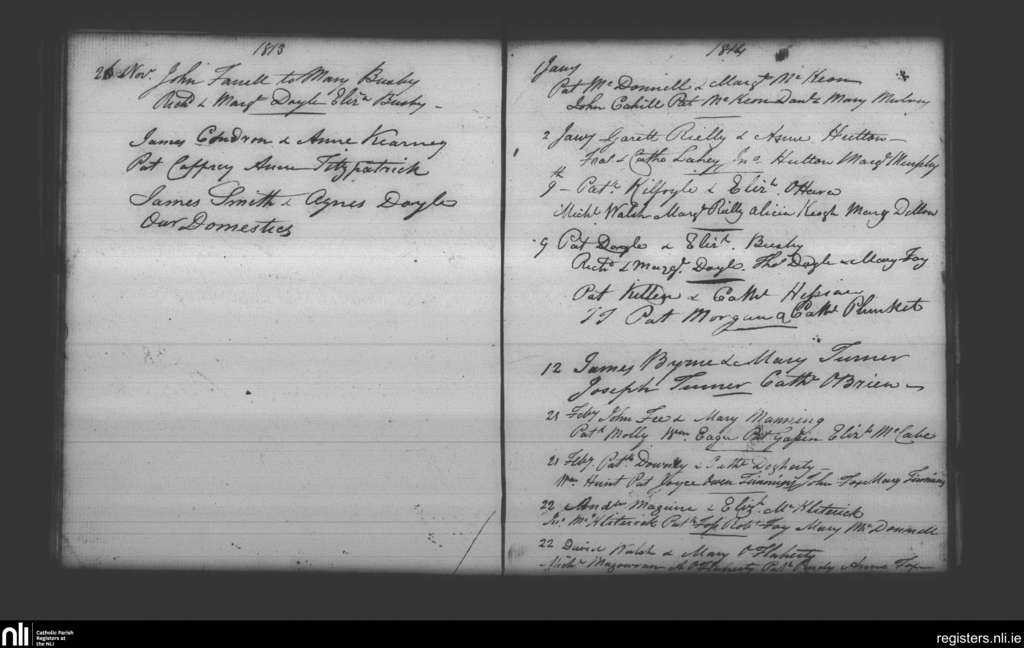 Booterstown; County of Dublin; Archdiocese of Dublin. Marriages, Nov. 1813 to Jan. 1814