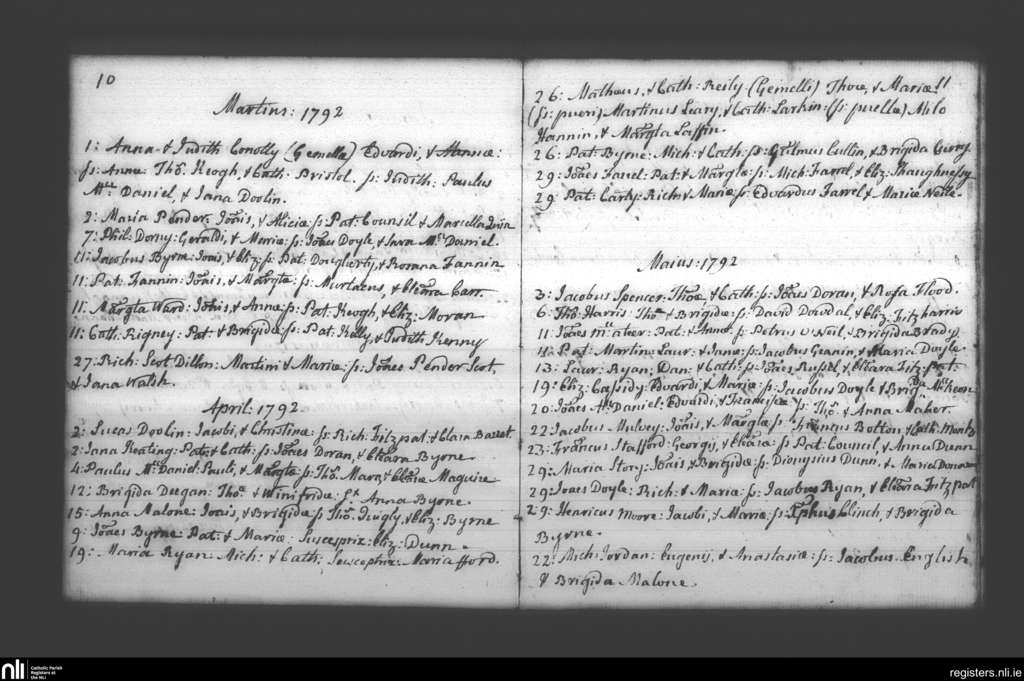 Booterstown; County of Dublin; Archdiocese of Dublin. Baptisms, Mar. 1792 to May 1792