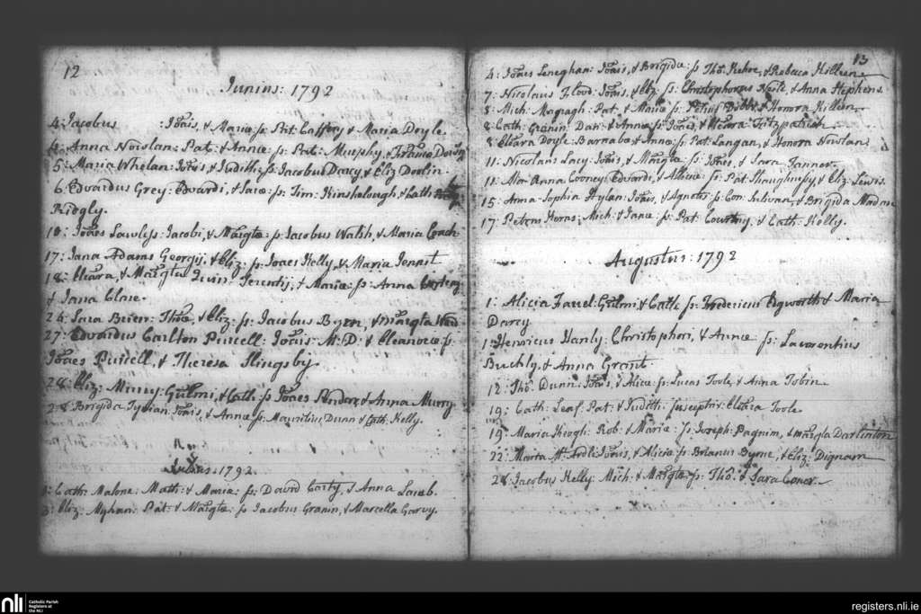 Booterstown; County of Dublin; Archdiocese of Dublin. Baptisms, June 1792 to Aug. 1792