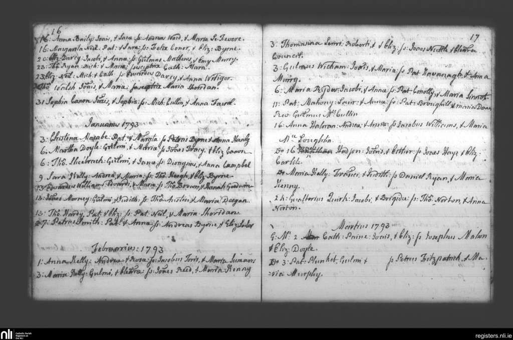 Booterstown; County of Dublin; Archdiocese of Dublin. Baptisms, Dec. 1792 to Mar. 1793