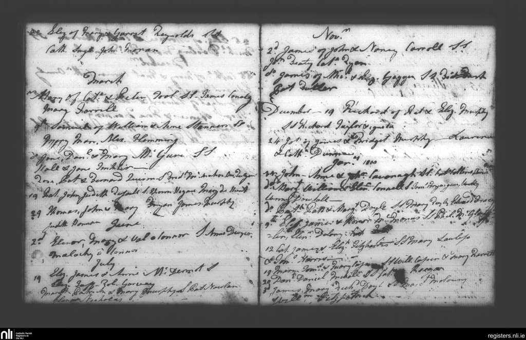 Booterstown; County of Dublin; Archdiocese of Dublin. Baptisms, Feb. 1799 to Jan. 1800