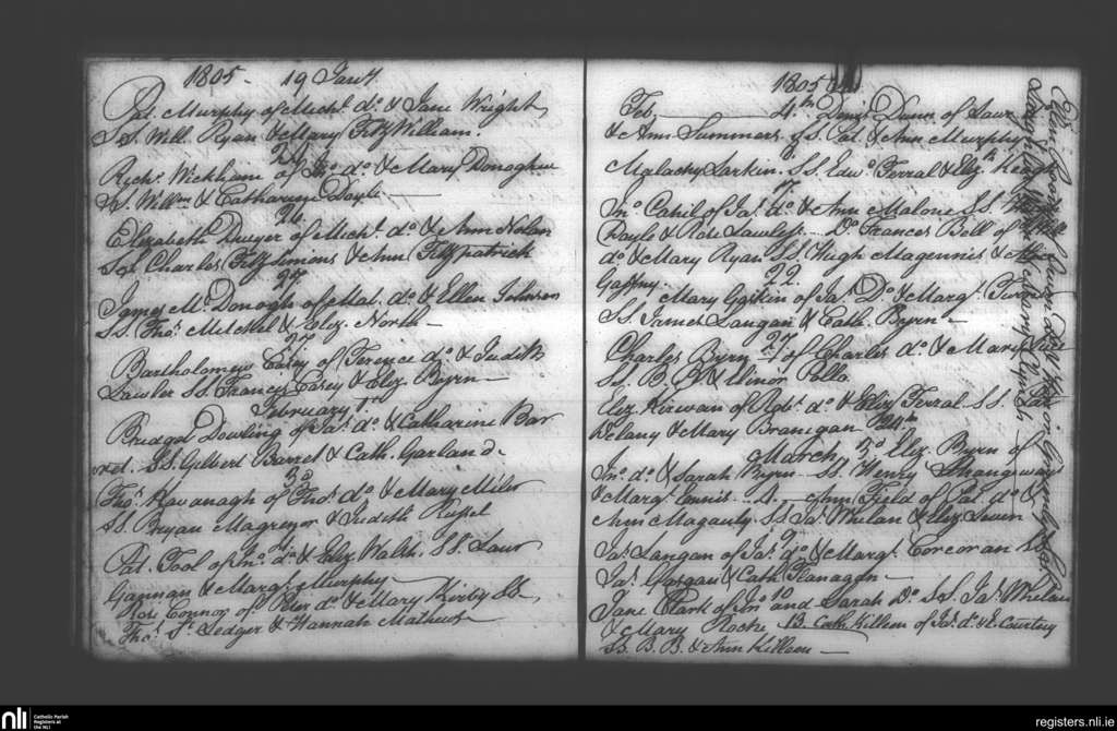 Booterstown; County of Dublin; Archdiocese of Dublin. Baptisms, Jan. 1805 to Mar. 1805