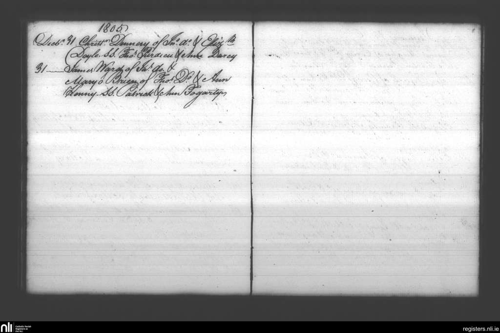 Booterstown; County of Dublin; Archdiocese of Dublin. Baptisms, Dec. 1805