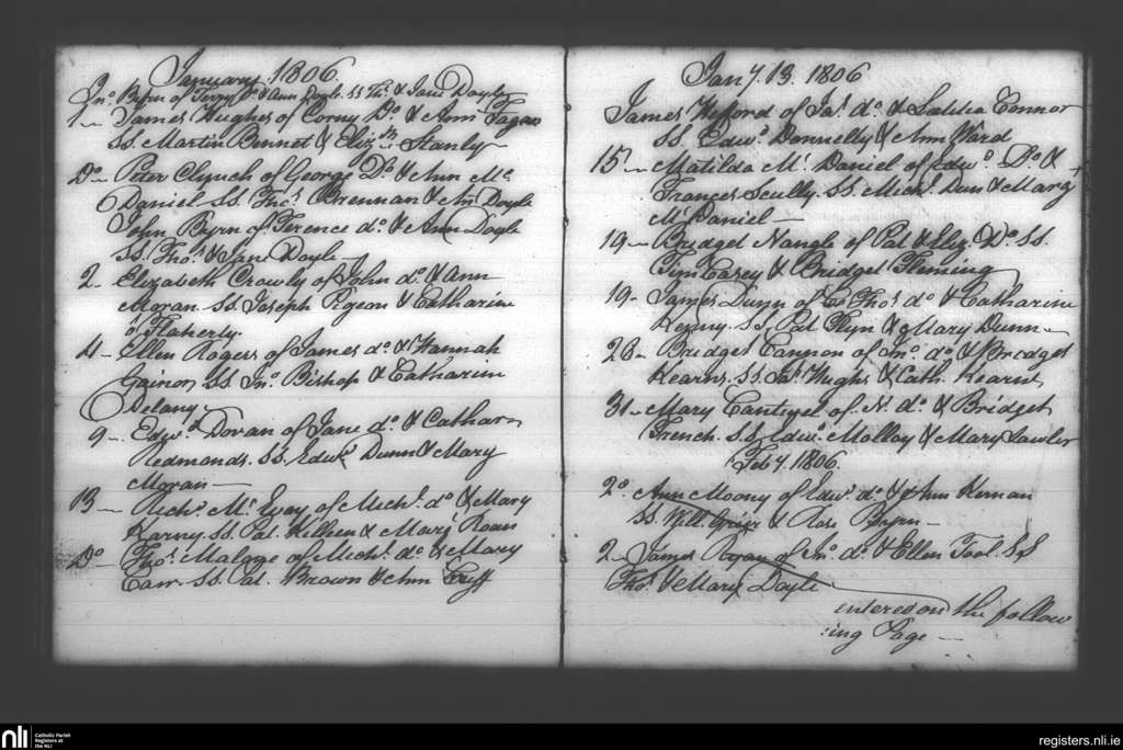 Booterstown; County of Dublin; Archdiocese of Dublin. Baptisms, Jan. 1806