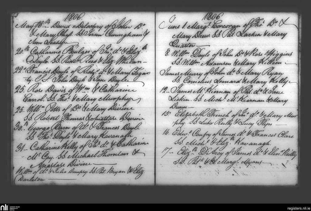 Booterstown; County of Dublin; Archdiocese of Dublin. Baptisms, May 1806 to June 1806