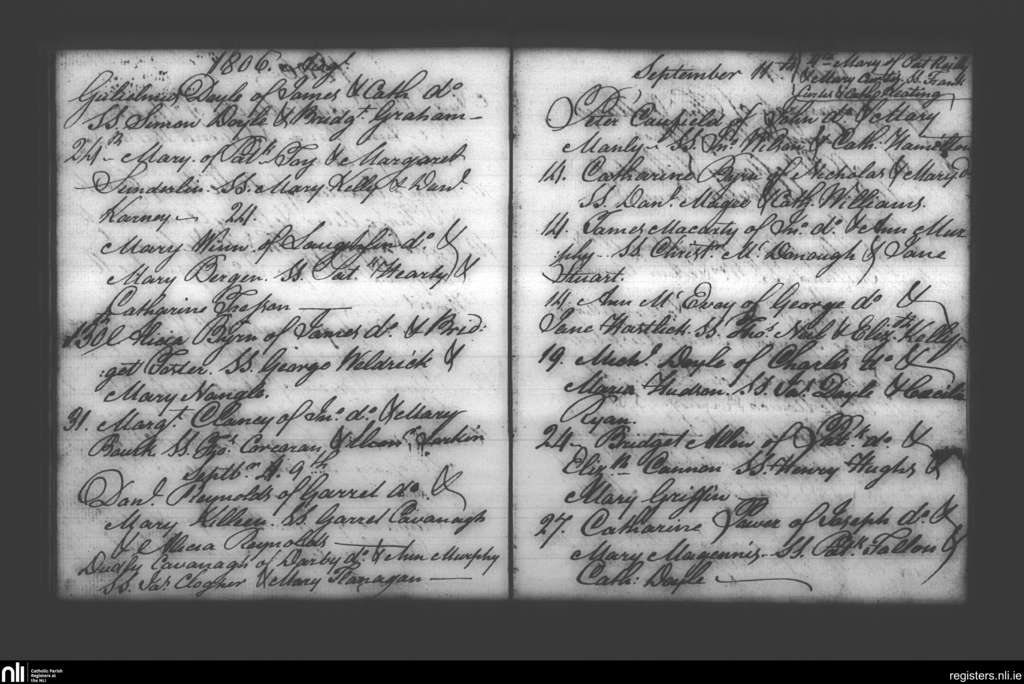 Booterstown; County of Dublin; Archdiocese of Dublin. Baptisms, Aug. 1806 to Sep. 1806
