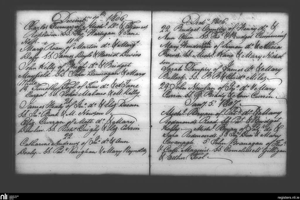 Booterstown; County of Dublin; Archdiocese of Dublin. Baptisms, Dec. 1806 to Jan. 1807