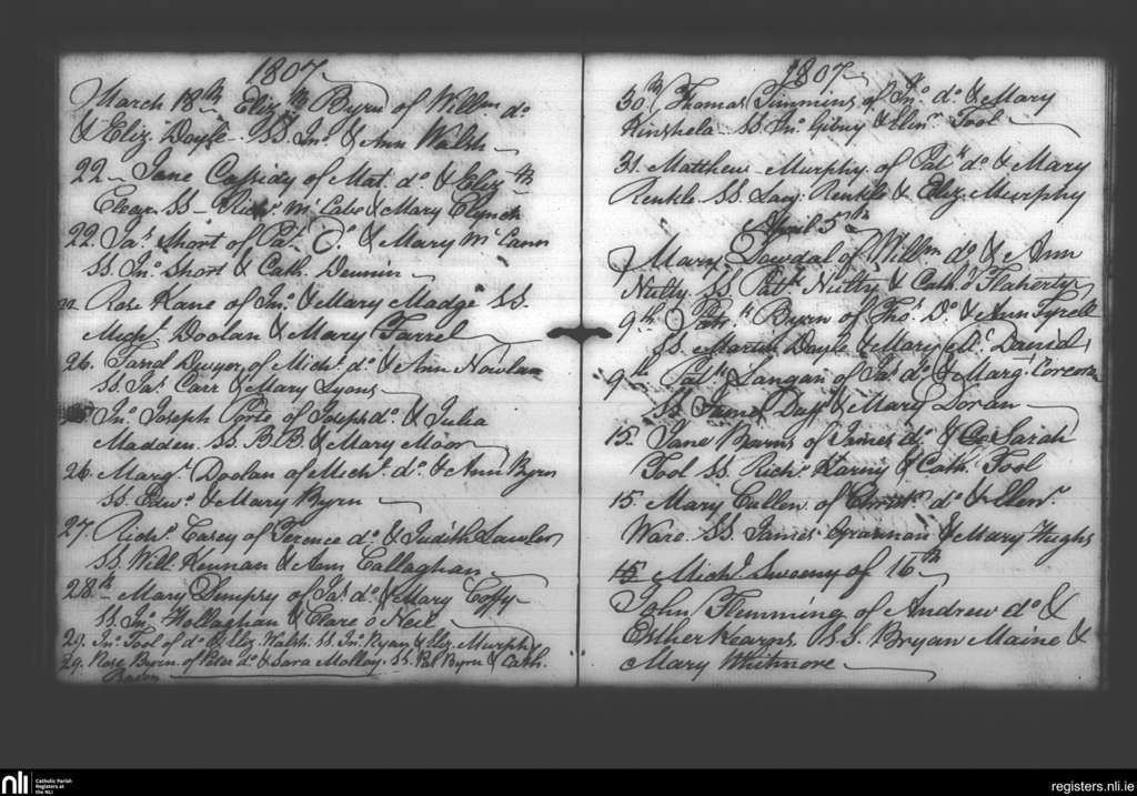 Booterstown; County of Dublin; Archdiocese of Dublin. Baptisms, Mar. 1807 to Apr. 1807