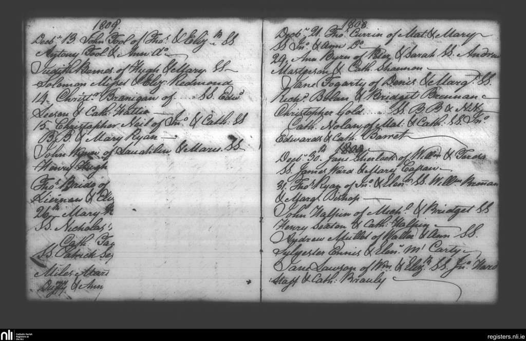 Booterstown; County of Dublin; Archdiocese of Dublin. Baptisms, Dec. 1808