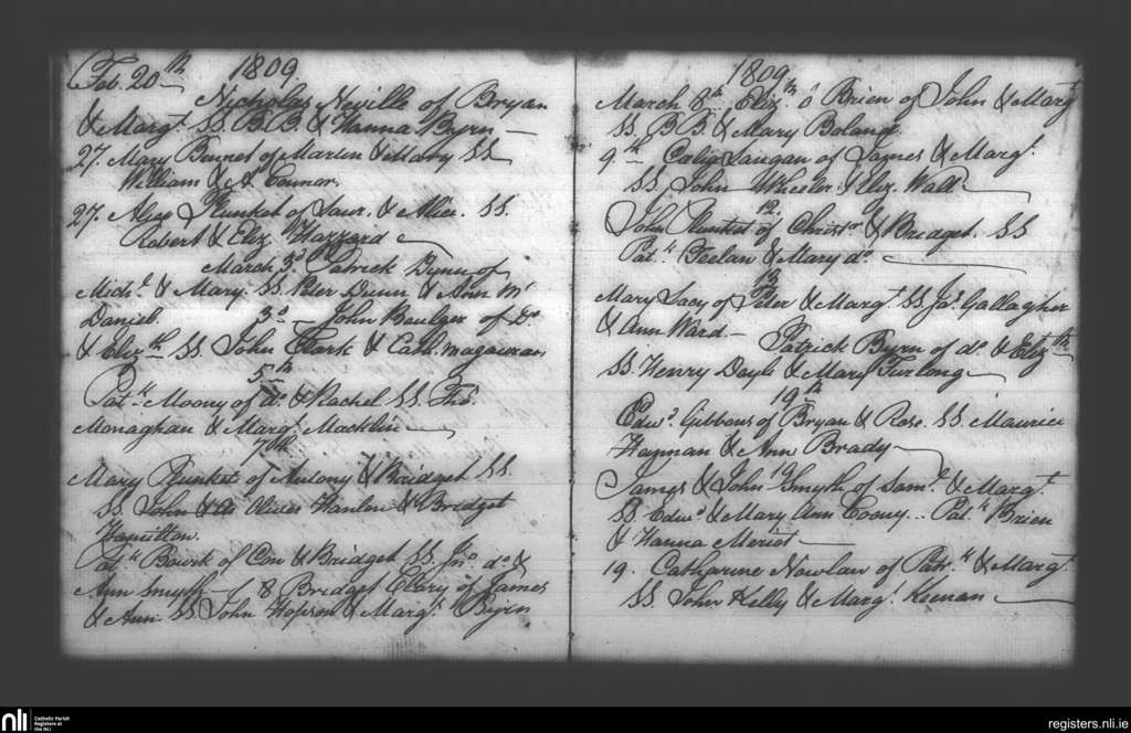 Booterstown; County of Dublin; Archdiocese of Dublin. Baptisms, Feb. 1809 to Mar. 1809