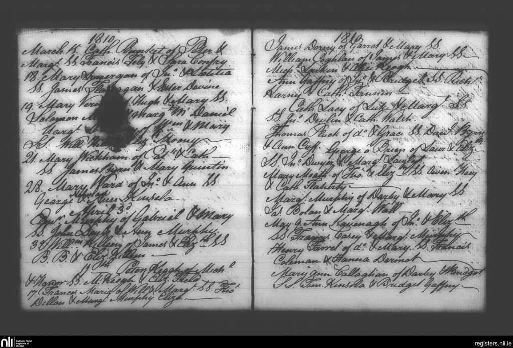 Booterstown; County of Dublin; Archdiocese of Dublin. Baptisms, Mar. 1810 to May 1810