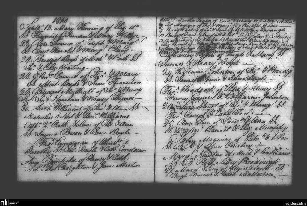 Booterstown; County of Dublin; Archdiocese of Dublin. Baptisms, Sep. 1810 to Oct. 1810