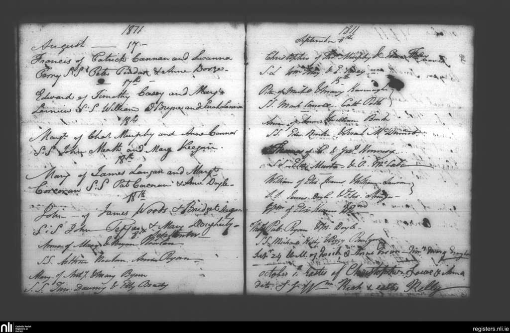 Booterstown; County of Dublin; Archdiocese of Dublin. Baptisms, Aug. 1811 to Oct. 1811