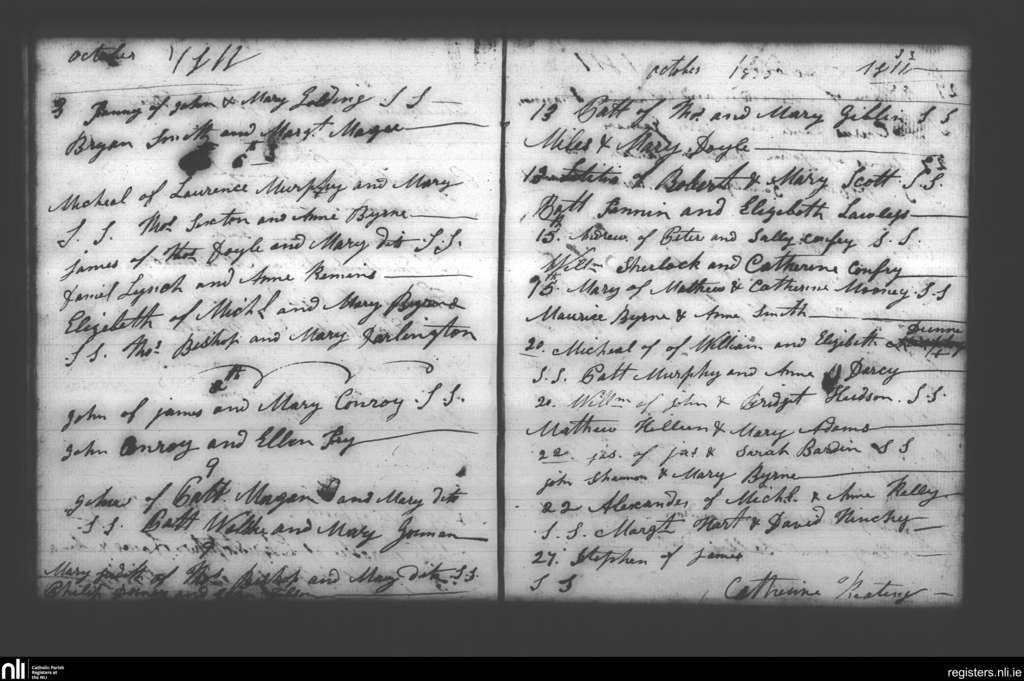 Booterstown; County of Dublin; Archdiocese of Dublin. Baptisms, Oct. 1811