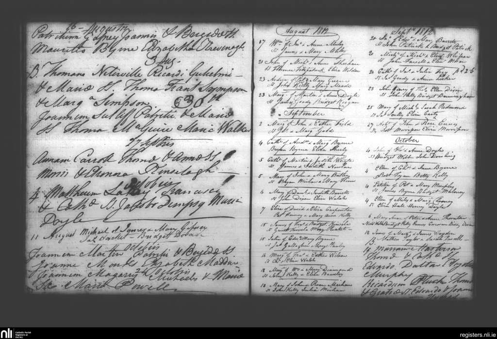 Booterstown; County of Dublin; Archdiocese of Dublin. Baptisms, Aug. 1812 to Oct. 1812