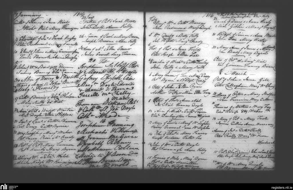 Booterstown; County of Dublin; Archdiocese of Dublin. Baptisms, Jan. 1814 to Mar. 1814