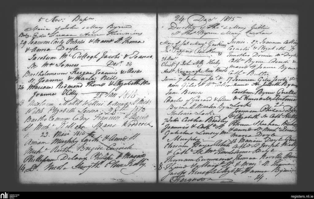Booterstown; County of Dublin; Archdiocese of Dublin. Baptisms, June 1815 to May 1816