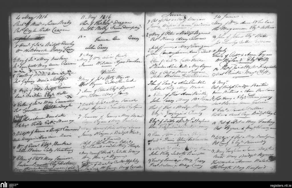Booterstown; County of Dublin; Archdiocese of Dublin. Baptisms, Apr. 1816 to Aug. 1816
