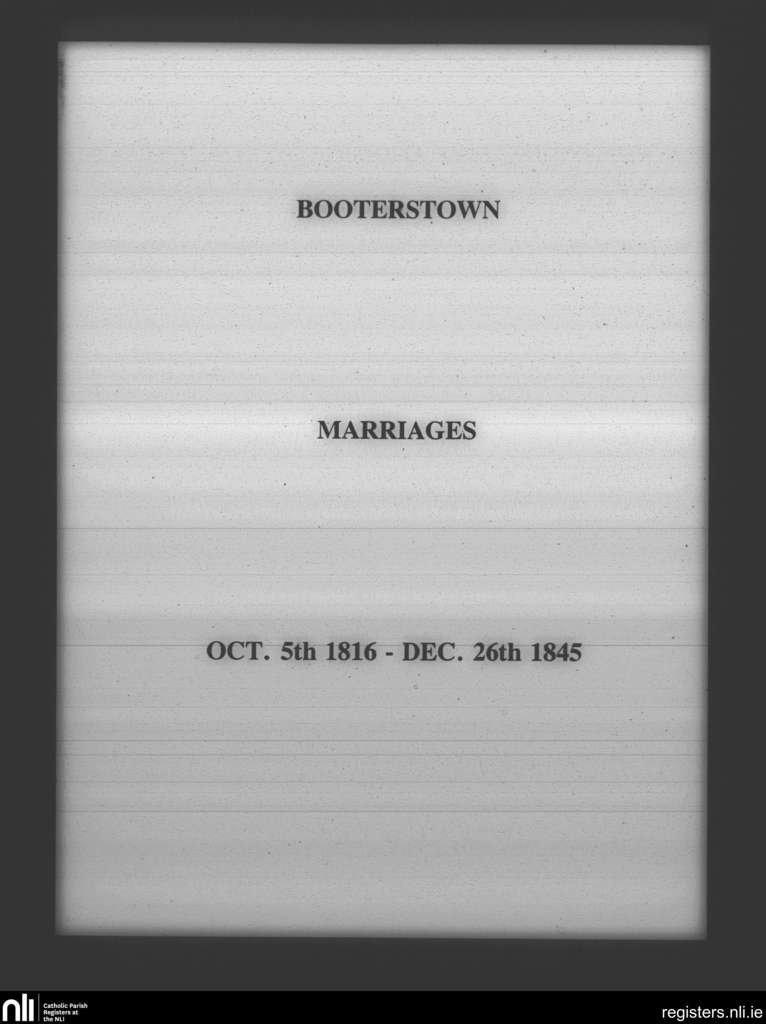 Booterstown; County of Dublin; Archdiocese of Dublin. Marriages