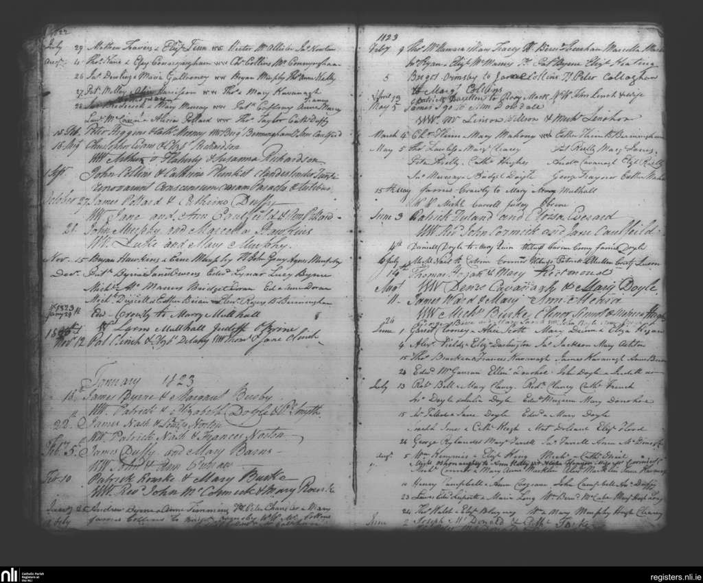 Booterstown; County of Dublin; Archdiocese of Dublin. Marriages, Feb. 1822 to Nov. 1823