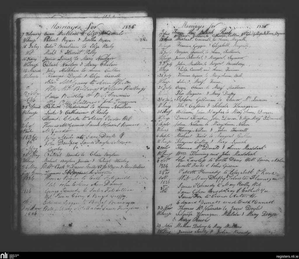 Booterstown; County of Dublin; Archdiocese of Dublin. Marriages, Feb. 1836 to Nov. 1836
