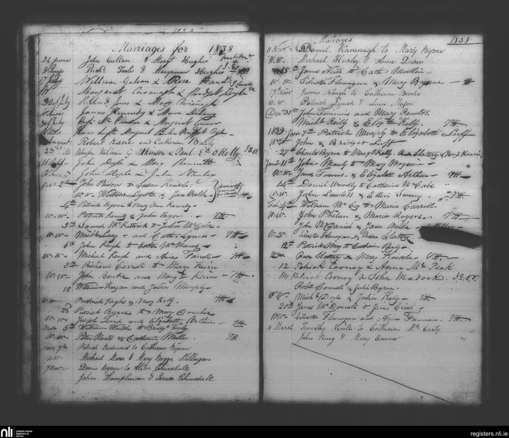 Booterstown; County of Dublin; Archdiocese of Dublin. Marriages, June 1838 to Mar. 1839