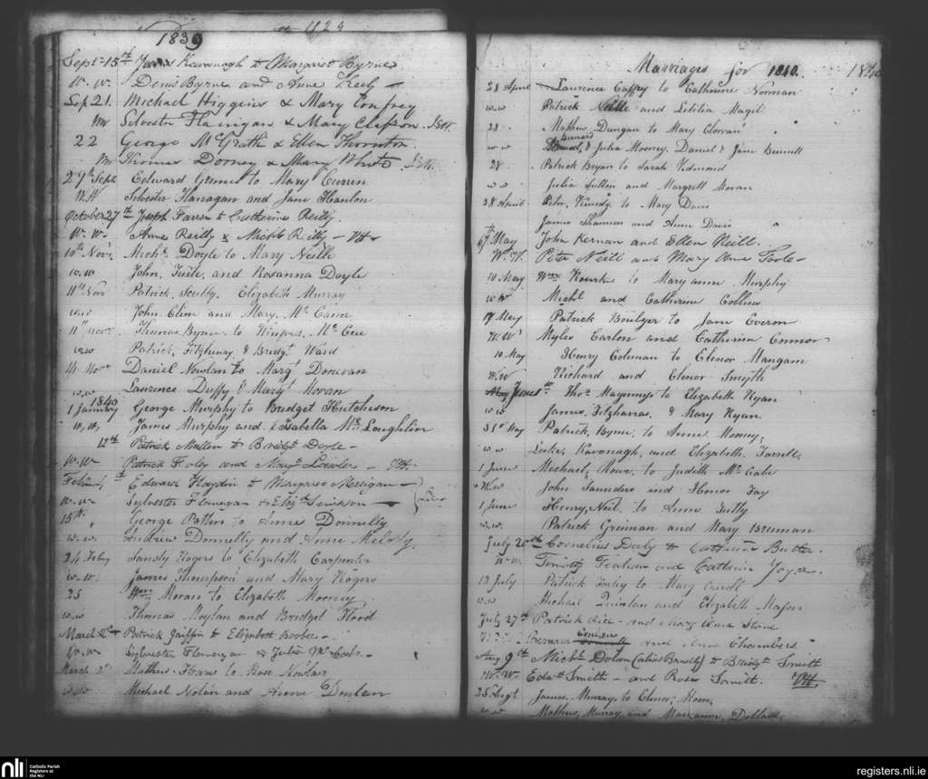 Booterstown; County of Dublin; Archdiocese of Dublin. Marriages, Sep. 1839 to Aug. 1840