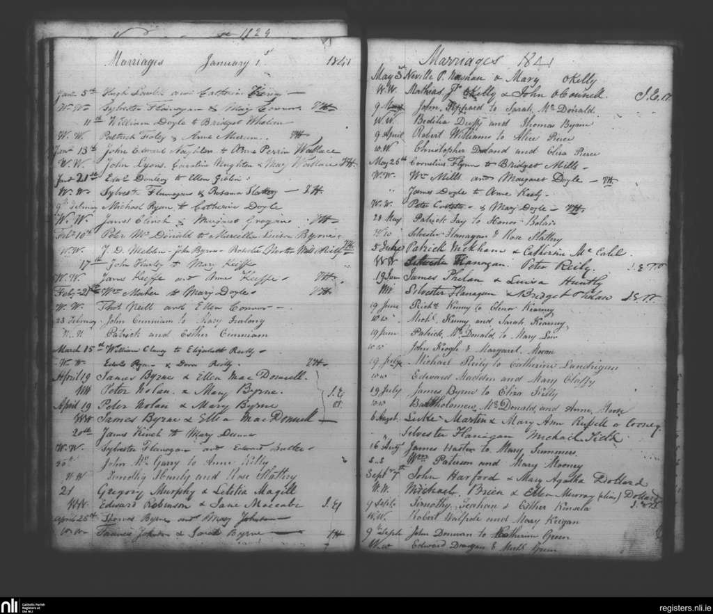 Booterstown; County of Dublin; Archdiocese of Dublin. Marriages, Jan. 1841 to Sep. 1841